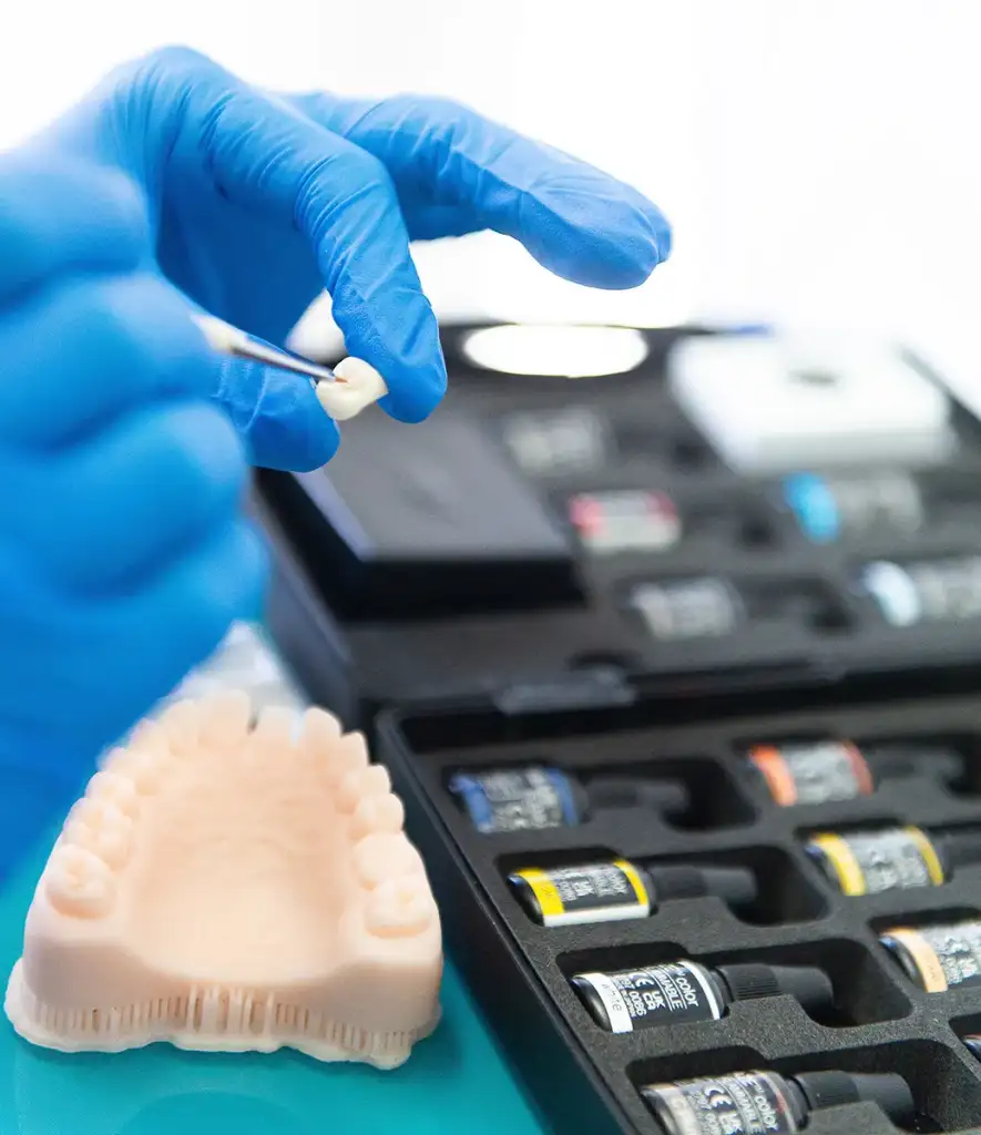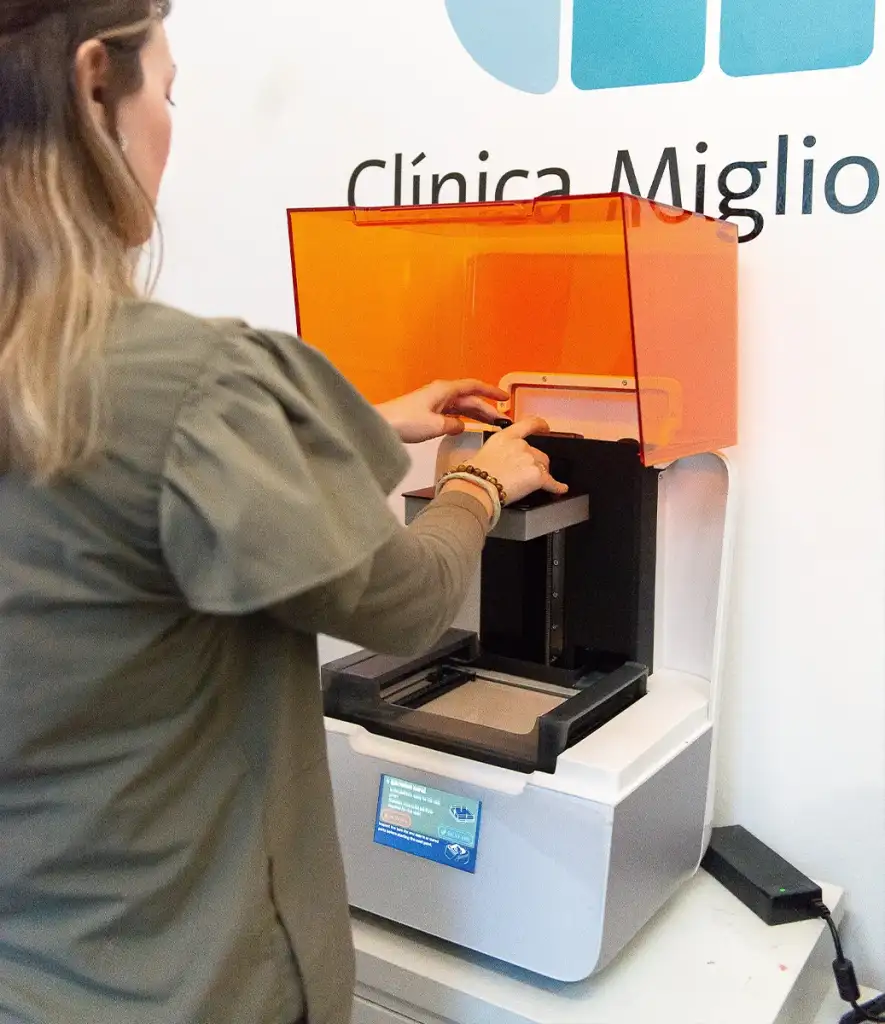 Nos permite fabricar nuestros propios trabajos: modelos, coronas, puentes dentales, placas de bruxismo, etc. De esta forma, tenemos más control de la calidad y los tiempos.